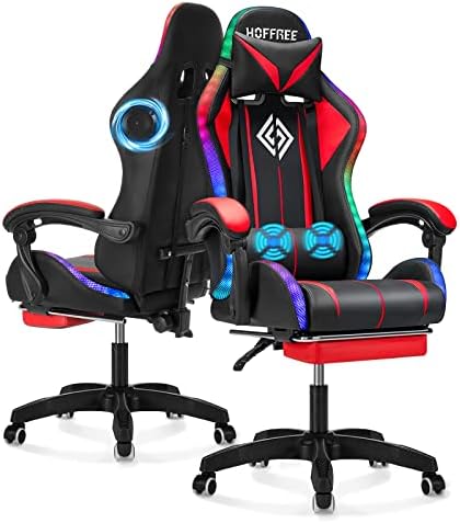 View full detailsRGB Gaming Chair with Bluetooth Speakers and LED Lights Ergonomic Massage Computer Game Chair with Footrest High Back Music Video Game Chair with Lumbar Support Red and Black