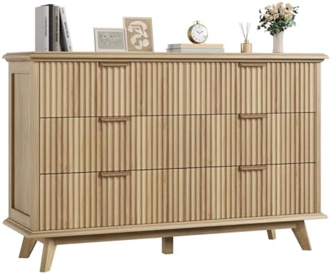 View full detailsQUW Fluted Dresser for Bedroom with 6 Drawers, 47.2" Wide Modern Chest of Drawers with Metal Handle, Wooden Dresser TV Stand and Closet Clothes Storage Organizer for Living Room, Hallway, Natural Oak