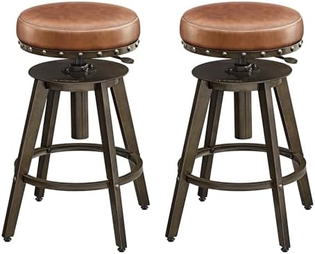 View full detailsSONGMICS HOME Bar Stools, Set of 2, Steampunk Counter Stool for Kitchen, Adjustable Height and Swivel Padded Seat, Workbench Stool, 16.5 x 19.3 x 24.6-29.3 Inches, Caramel Brown ULJB096K01