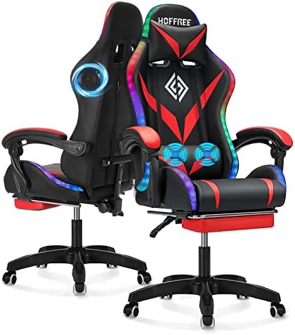 View full detailsGaming Chair with Speakers and LED Lights Ergonomic Computer Chair with Massage and Footrest Reclining Video Game Chair for Adults with Adjustable Lumbar Support Red and Black