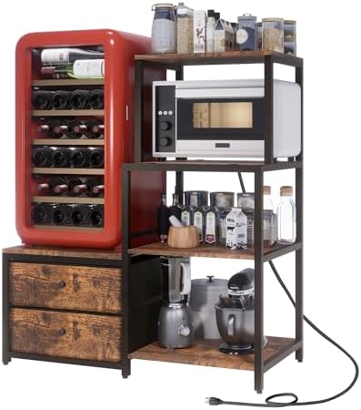 View full detailsMini Fridge Stand with Storage, Microwave and Mini Fridge Stand with Power Outlet, Coffee Bar, Kitchen Baker, for Dorm, Office(Brown)