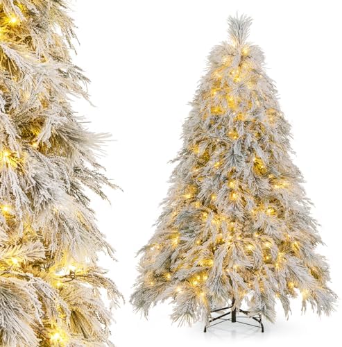 View full detailsDORTALA Pre-Lit Snow Flocked Christmas Tree 6 FT, Hinged Artificial Xmas Tree with Stand, 519 Branch Tips, 250 Warm White LED Lights, Decoration Christmas Tree for Home Living Room, Shop & Office