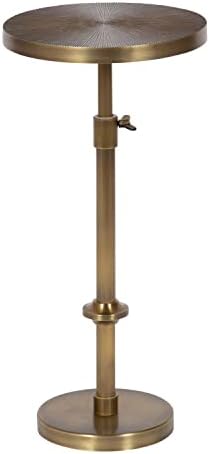 View full detailsKate and Laurel Engles Traditional Adjustable-Height Pedestal Drink Table; 10 x 10 x 30; Antique Brass; Vintage Round Indoor Metal Plant Stand with Embossed Sunburst Pattern