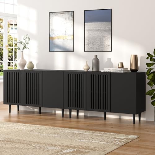 View full detailsCHUWELL Modern Storage Cabinet, 94.4" Buffet Cabinet with 6 DIY Doors and Adjustable Shelf, Sideboard Coffee Bar with Solid Wood Feet for Kitchen,Dining Room,Living Room,Black