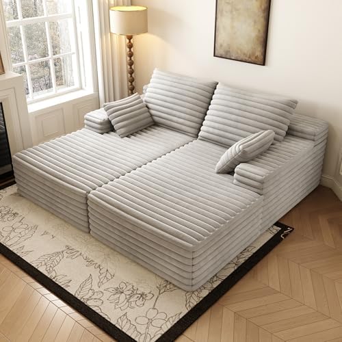 View full details80” Oversized Double Lounge Chaise,Cloud Plush Sofa Bed,Upholstered Boneless Cloud Sofa Deep Seat,No Assembly Required,Modern Corduroy Sleeper Loveseat Chair for Living Room Bedroom Reading,Grey