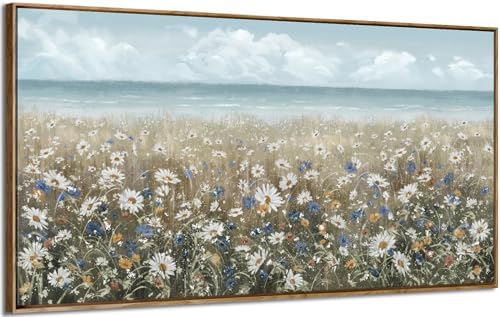 View full detailsamatop Large Wall Art for Living Room Framed Boho Beach Coastal Floral Ocean Wall Picture Farmhouse Daisy Flower Sea Canvas Print Nautical Neutral Vintage Warm Artwork Home Bedroom Office Decor 48x24