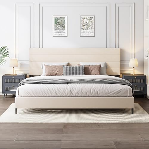 View full detailsKing Size Bed Frame, Modern Upholstered Bed Frame King with Adjustable Linen Headboard, Wooden Slats Support Platform, No Box Spring Needed,Easy Assembly,Beige