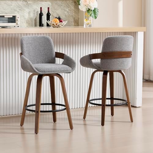 View full detailsSwivel Bar Stool Set of 2, Fabric Counter High Stools with Back and Armrest 360° Swivel Walnut Bar Chair for Kitchen Island Home Dining - Light Grey