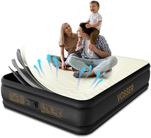 【Unique Foam Topper & Ventilation Holes Design】: Unlike typical inflatable mattresses, VOSSER air mattress features a foam topper that provi...