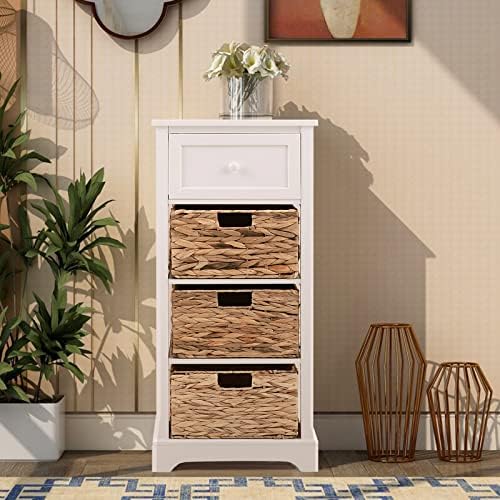 View full detailsPHI VILLA White Storage Cabinet with Baskets, Farmhouse Accent Narrow Cabinets with Shelves for Bathroom Entryway Rattan Cabinet with Drawer End Table Beside Table