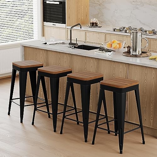 View full detailsBar Stools Set of 4 Metal Bar Stool Counter Height Bar Stools Black, Modern 24" Bar Chairs Without Back,Wooden Seat Bar Stool Counter Height