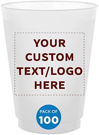 View full detailsDISCOUNT PROMOS Custom Frosted Plastic Stadium Cups, 100 pack, Promotional Text, Logo, 16 oz. Shatterproof Flexible Reusable Party Cups, Natural