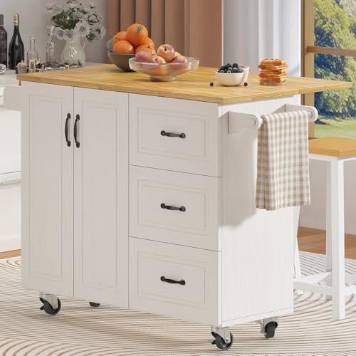 View full details4 Ever Winne Kitchen Island with Storage on Wheels, Rolling Kitchen Island with Spice Rack & Towel Rack, Portable Island Table for Kitchen, White