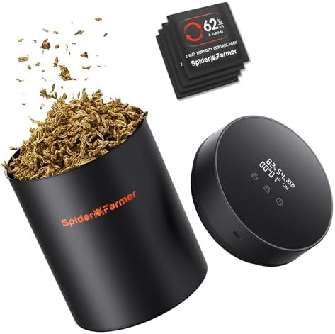 View full detailsSpider Farmer New Auto-Cure Smart Jar, 2L Portable Vacuum Seal Container with 4 x 62% Humidity Packs, Curing Jar Airtight Storage for Herbs, Mushrooms, Coffee, Spices, Flowers