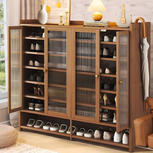 View full detailsBamboo Shoe Cabinet, 8-Tier Shoe Storage Cabinet with Doors, Freestanding Bamboo Shoe Rack Organizer with Shelves for Entryway, Hallway, Closet, Living Room (Brown-5)