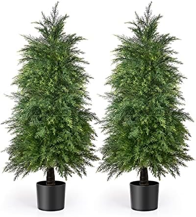 View full details2 Pack 4ft Artificial Cedar Topiary Trees for Outdoor Front Porch Décor, UV Rated Fake Potted Plants for Indoor and Outdoor Use