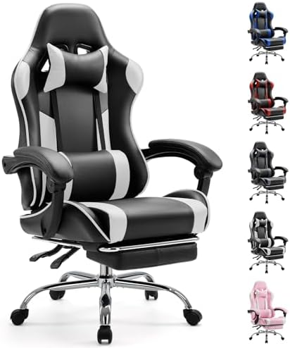 View full detailsSweetcrispy Computer Video Game Desk Chair - Ergonomic Comfy Lumbar Support with Footrest, PU Leather Recliner with Headrest, Fixed Up Armrest, Height Adjustable and 360° Swivel, for Adults, White