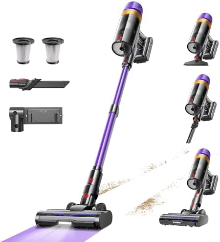 View full detailsCordless Vacuum Cleaner, 580W 50KPA 70Mins Upgraded Stick Vacuum Cleaners for Home, Wireless Vacumm with Self-Standing and Touch Screen, Anti-Tangle Brush for Hardwood Floor/Carpet/Pet Hair