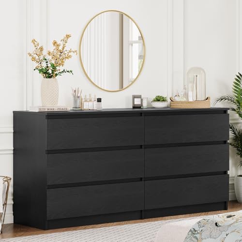 View full detailsAngel Sar 59'' Black Dresser for Bedroom, Modern 6 Drawer Wood Dresser with Handle-Free Design & Thick Panel, Minimalist Storage Cabinet for Clothes, Entryway Use
