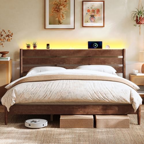 View full detailsSONGMICS HOME King Bed Frame with Solid Wood Legs Slats, Platform Bed with Headboard, LED Lights, Charging Station, Mid-Century Modern Style, No Box Spring Needed, Coffee Brown URMB414K02