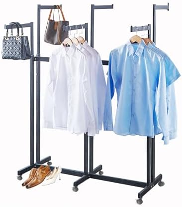 View full detailsFloor Standing Metal Garment Rack - Heavy Retail Display Racks With Wheels, 6 Arms Clothing Rack, Square Tubing Portable Shirt Racks, Merchandise Display For Hanging Clothes (Black)