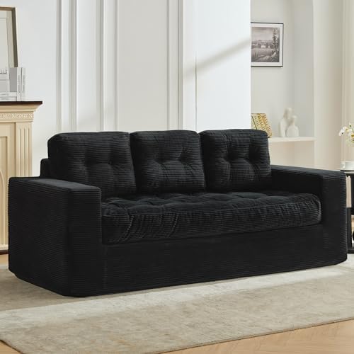 View full details74" Boneless Couches for Living Room, Modern 3 Seater Sofa with Deep Seat, Comfy Cloud Sofa with Corduroy Fabric, No Assembly Couch, Bean Bag Couch for Bedroom, Dorm, Apartment, Black