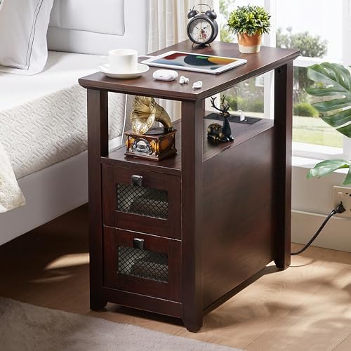 View full detailsFarmhouse XXL End Table with Charging Station, Narrow Side Table with USB Ports and Outlets, Nightstand with 2 Drawers Storage, Bedside Tables for Living Room, Bedroom, Rustic Cherry