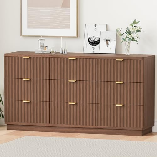 View full details9 Drawer Dresser for Bedroom, 57.1" Wide Modern Chest of Drawers for Bedroom, Curved Profile Design, Wood Dresser for Living Room Entryway