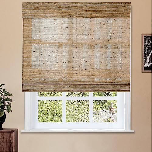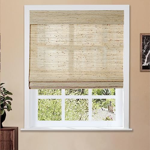 View full detailsTWOPAGES Natural No Drill Cordless Jute Roman Shade Customized Light Filtering Blackout Roman Blind Roman Window Shade for Windows, Bark, 1 Piece