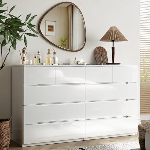 View full details10 Drawer White Dresser for Bedroom, 55" Long Dresser Chest of Drawers, Large High Gloss Modern Storage Cabinet with Big Drawers Handle Free, Living Room, Entryway, Hallway