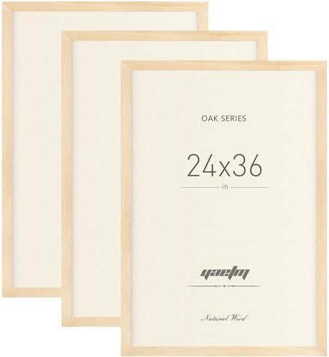 View full detailsYaetm 24x36 Oak Frames Set of 3, Wide Molding, Natural Solid Wood 24x36 Poster Frame, Display Large Picture with Plexiglass for Wall Mount (3 pack, Oak)