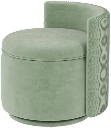 View full details360° Swivel Accent Chair with Storage, Vanity Stool with Back, Velvet Storage Ottoman, Upholstered Round Barrel Vanity Chair for Living Room, Makeup Room, Bedroom (Green)