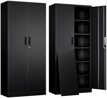 HEAVY-DUTY METAL CONSTRUCTION: Tall storage cabinets is made of steel plate with a powder coating process to prevent cracking and rusting. Black...