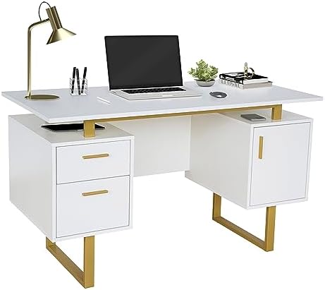 View full detailsTechni Mobili Storage Drawers and Cabinet 51.25” W-Modern Office Large Floating Desktop Surface Desk, 23.6" D x 51.2" W x 29.8" H, White/Gold