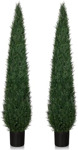 View full detailsArtificial Cedar Topiary Trees, 6FT Topiary Trees Artificial Outdoor UV Resistant, Realistic Potted Fake Pine Plants Shrubs for Front Porch Home Garden Decor, Set of 2