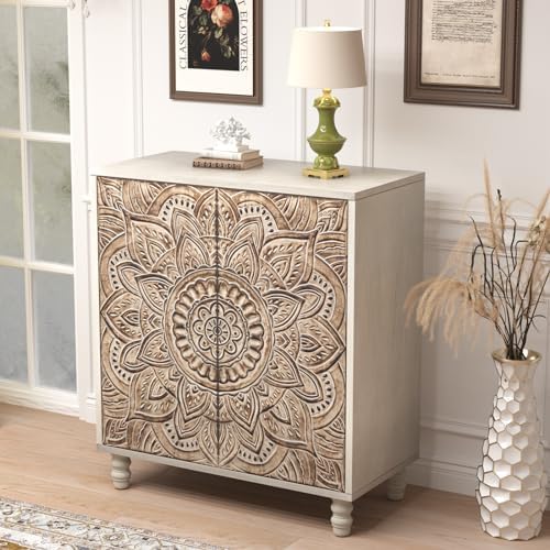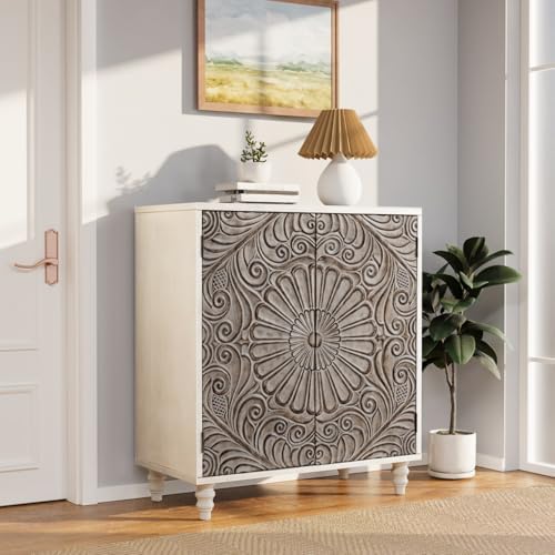View full detailsCOSIEST 32" W Sideboard Buffet Cabinet with Storage, Accent Cabinet with 2 Push-to-Open Magnetic Doors, Vintage MDF Buffet Table for Living Room, Kitchen, Hallway (Gray,Lotus Pattern)