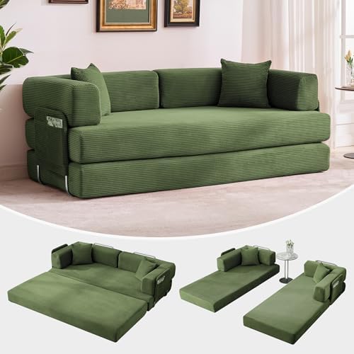View full detailsConvertible Sleeper Sofa Bed, 78.8" Floor Sofa Bed, 5-in-1 Folding Mattress Couch Loveseat with Fixed-Shape Frame, Pillow, Corduroy Fabric for Living Room Bedroom Lounge, Green