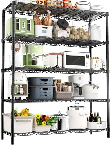 View full detailsStorage Shelves Heavy Duty, 48" L x 20" W x 72" H Garage Shelving Unit Loads 2000LBS, 5-Tier Adjustable Metal Utility Shelf, Wire Shelf for Kitchen, Laundry Room, Pantry, Warehouse, Basement