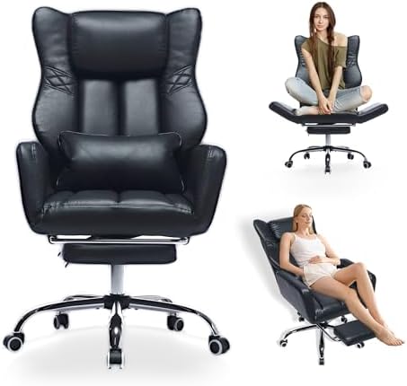 【Ergonomic Office Chair】This ergonomic leather office chair is designed according to the human body structure to provide strong support points f...