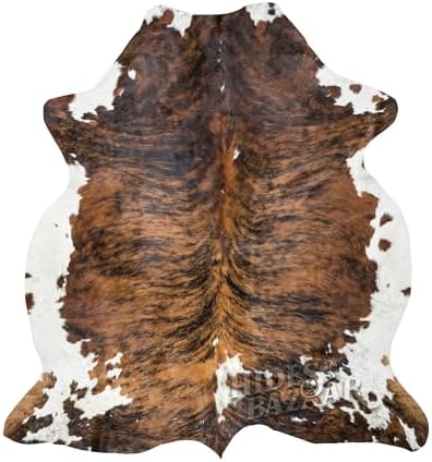 View full detailsHIDES BAZAAR Brown Brindle Cowhide Rug Premium CowSkin Rugs with Unique Brown, Black & White Pattern - Natural Cowhide Rug Made Tanned Leather Cow Hides - Cow Hide Rugs 6x6-7 ft