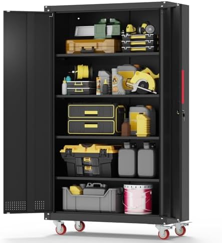 View full detailsMetal Garage Cabinets with Wheels| 71" Steel Lockable Garage Storage Cabinet with 4 Adjustable Shelves, Heavy-Duty Tool Storage Cabinet for Home, Basement, Workshop (Black)