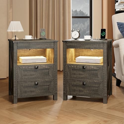 View full detailsNightstands Set of 2 with Gun Drawer, Farmhouse Bedside Table with Charging Station, Gun Night Stand with LED Light & Human Sensor, Smart End Table for Bedroom, Rustic Brown