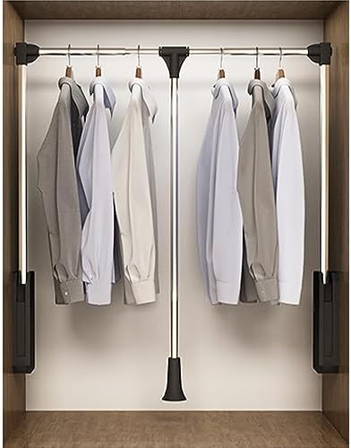 View full detailsPull Down Closet Rod, 60 lbs Load Capacity, Stainless Steel Adjustable 35-46.5 inches Soft-Close Wardrobe Lift Rail Organizer for Hanging Clothes, Two-way Buffering Side & Back Mounted Closet Rod
