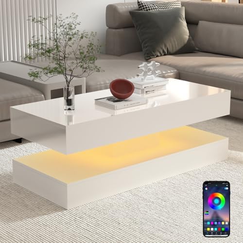 View full detailsUspeedy 47.3in Large High Glossy LED Coffee Table with 2 Storage Drawers,Black/White Modern Coffee Tables for Living Room,Living Room Tables,APP LED Lights (White)