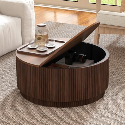 View full details31.5" Round Coffee Table with Storage, Mid Century Modern Coffee Tables with Fluted Base, Wooden Circle Accent Center Table for Living Room Small Space Apartment Office (Walnut)