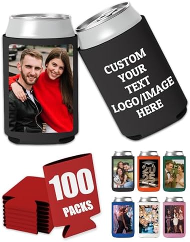 View full details100 Pack Custom Can Coolers Sleeves Bulk, Personalized Insulated Beverage Beer Cooler Drink Holder with Text Logo Image Sleeve for Wedding Favors, Graduation, Parties, Gifts (100)
