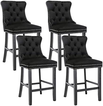 View full detailsVirabit Velvet Bar Stools Set of 4, 27" Counter Height Bar Stools with Button and Nailhead Trim, Upholstered Bar Stool with Back and Wooden Legs, for Kitchen, Cafe, Pub (Black)