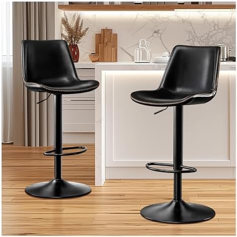 View full detailsModern X-Large Bar Stool with Microfiber Leather Seat - Height Adjustable, Ergonomic Heavy Duty Counter & Bar Chair Set of 2 Black