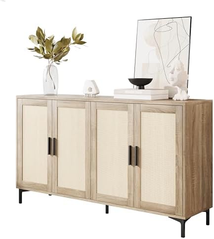 View full detailsJASIWAY Sideboard - Kitchen Buffet Cabinet with Rattan Decorated Doors, Accent Cabinets with Doors, Coffee Bar Cabinets Rattan Sideboard Buffet Cabinet with Storage (Natural with 4 Doors)