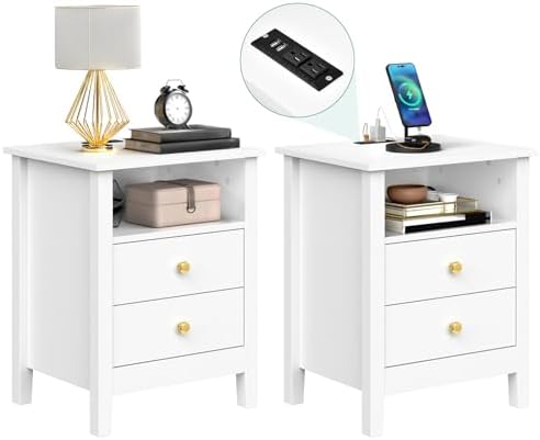View full detailsYITAHOME Nightstand with Charging Station, Night Stands with 2 Drawers for Bedroom, Modern Bedside Table End Side Table with USB Ports and Outlets, Set of 2, White